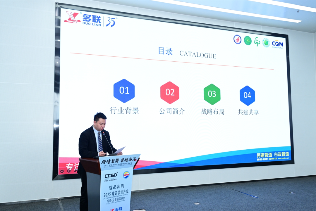 多联实业有限公司李劲以《以建材链接东盟》为主题,从供应链角度,强调以高质量建材为纽带,助力中国品牌扎根东盟。
